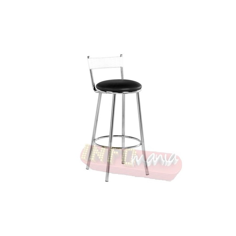 Banqueta estofada em espuma de alta densidade, revestida em courvin, dunas ou chenille, encosto tramado em junco sintético, tubo cromado ou pinturas em pó epóxi conforme tabela de cores abaixo.Altura do assento ao chão de 50, 60 e 70 cm