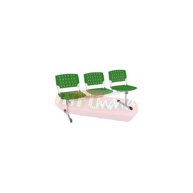 Longarina 2,3,4 e 5 lugares em plástico verde sólido, para sala de espera de escritórios, clínicas, para atendimento em geral, assento e encosto em polipropileno de alta resistência, com furos para ventilação corporal do usuário.